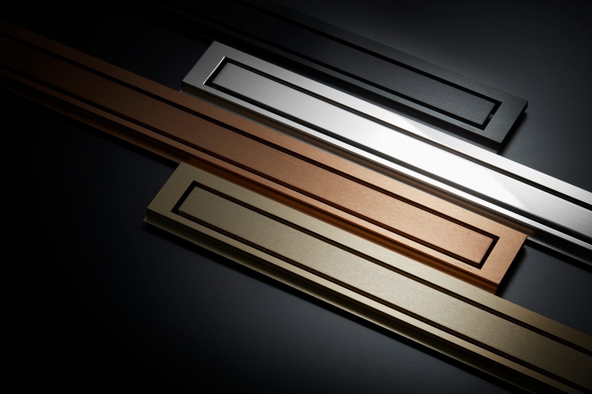 HighLine är Unidrains exklusiva och prisbelönta designserie där det klassiska gallret ersätts av en panel av borstad stål. I sortimentet ingår även den diskreta HighLine Custom, där en klinker liknande det övriga golvet fästs för att skapa ett nästan osynligt avlopp. HighLine har även vidareutvecklats till HighLine Colour där vi har lagt till nya ytbehandlingar och färger, för att göra det lättare att matcha detaljerna i badrummet. HighLine Colour finns i handpolerat rostfritt stål, mässing, koppar och svart, allt i PVD-behandlat borstat rostfritt stål.