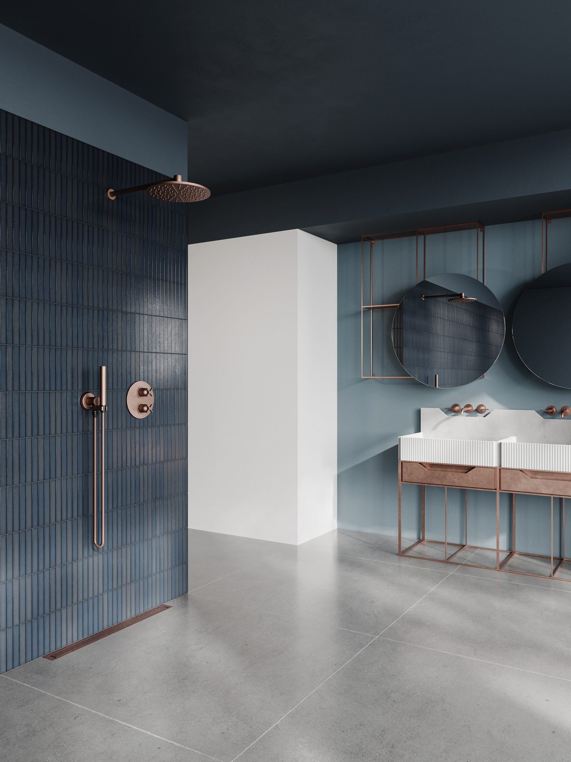 HighLine är Unidrains exklusiva och prisbelönta designserie där det klassiska gallret ersätts av en panel av borstad stål. I sortimentet ingår även den diskreta HighLine Custom, där en klinker liknande det övriga golvet fästs för att skapa ett nästan osynligt avlopp. HighLine har även vidareutvecklats till HighLine Colour där vi har lagt till nya ytbehandlingar och färger, för att göra det lättare att matcha detaljerna i badrummet. HighLine Colour finns i handpolerat rostfritt stål, mässing, koppar och svart, allt i PVD-behandlat borstat rostfritt stål.