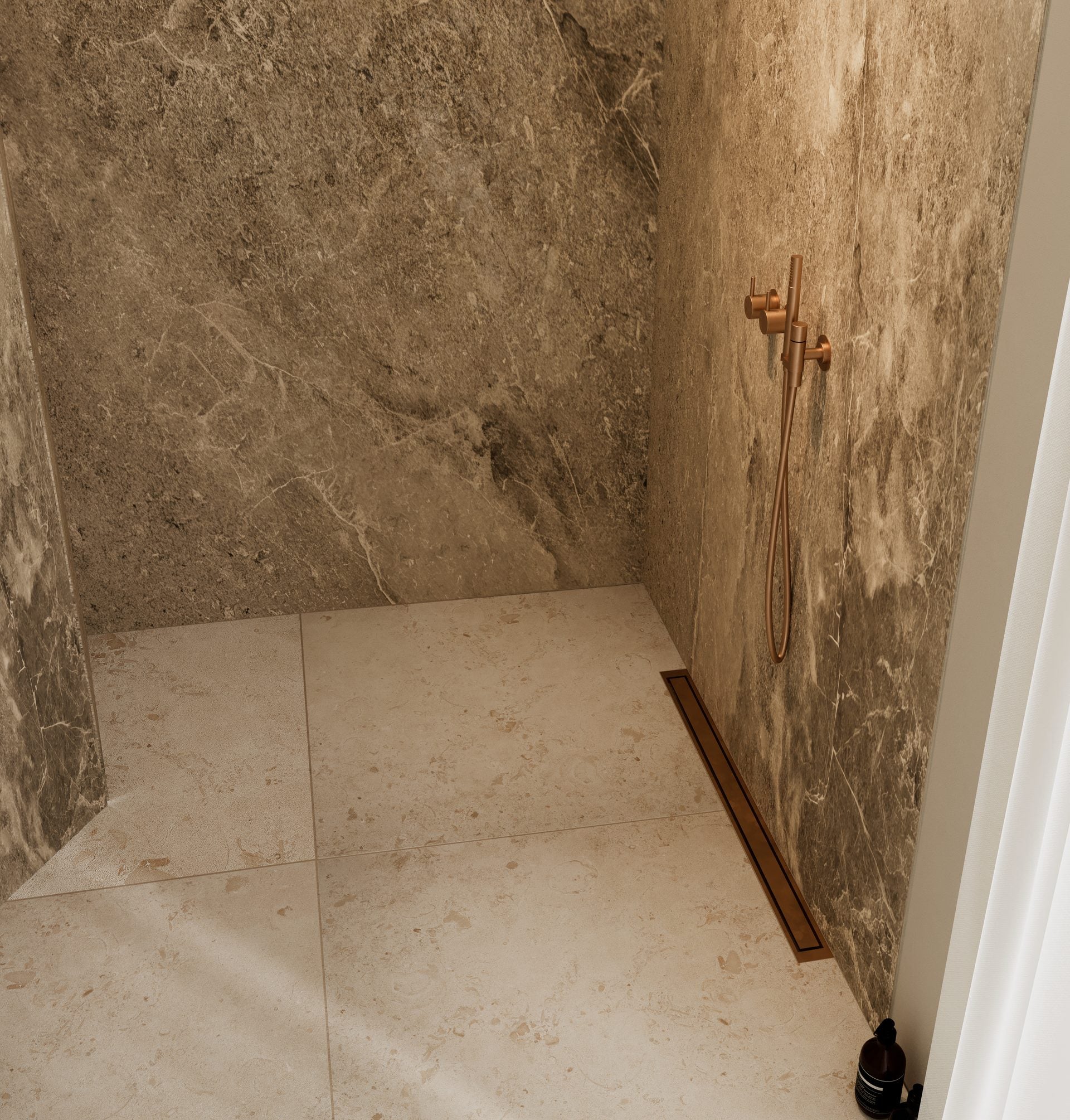Unidrain är känt för eleganta och strömlinjeformade lösningar som passar både nybyggnation och renoveringar. Unidrains linjära golvbrunn kan med fördel placeras väggnära eller friliggande. Oavsett vilken du väljer så är den försedd med Unidrains patenterade flänsar vilket gör lösningen 100% säker.