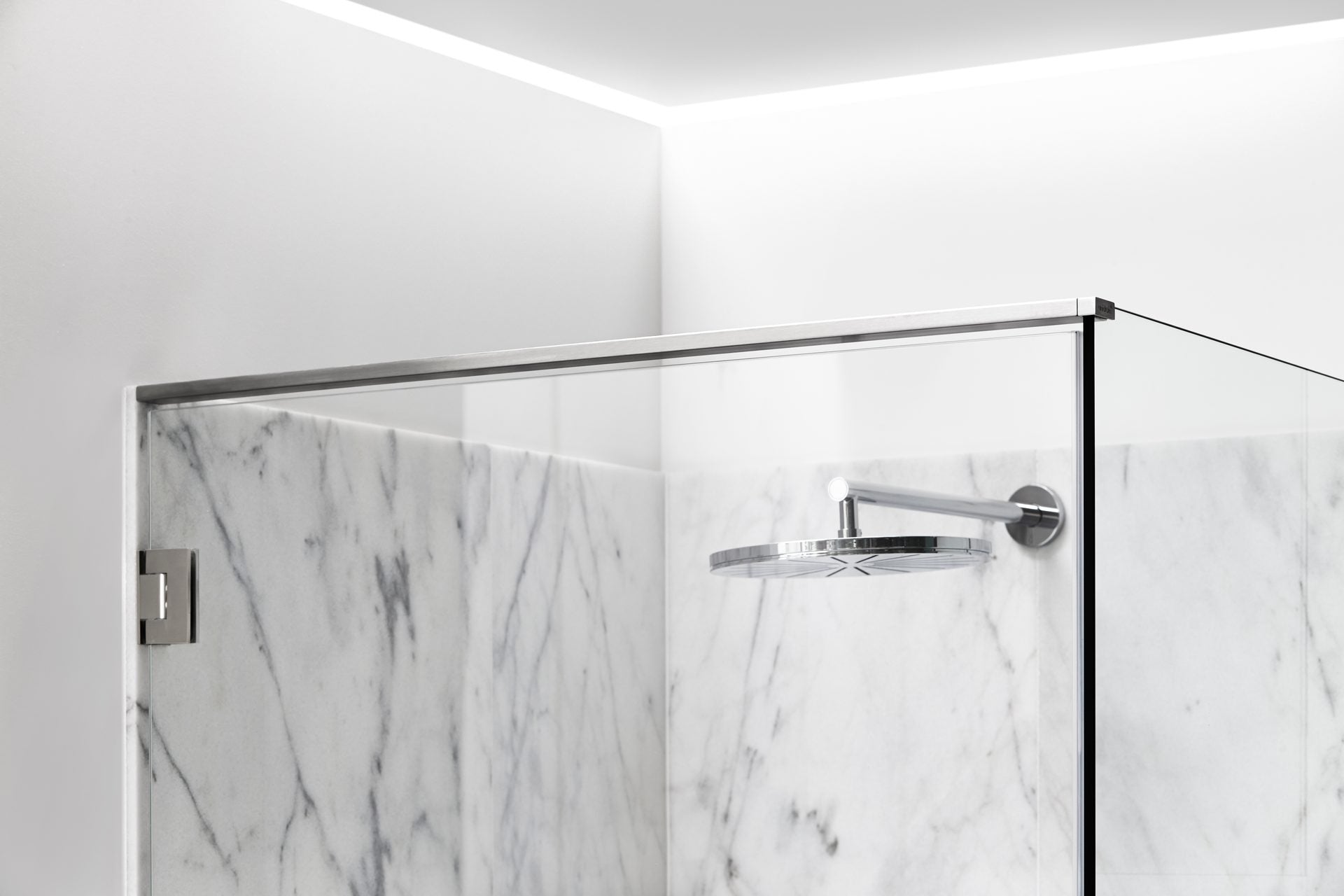 Den övre skenan stabiliserar duschväggen och rekommenderas för montering av GlassLine duschdörrar. Tillsammans med tätningslisten på duschdörren säkerställer den övre stången att skarven mellan vägg och dörr håller sig tät. Toppstången i stål finns i en längd och anpassas till den individuella duschkabinen.