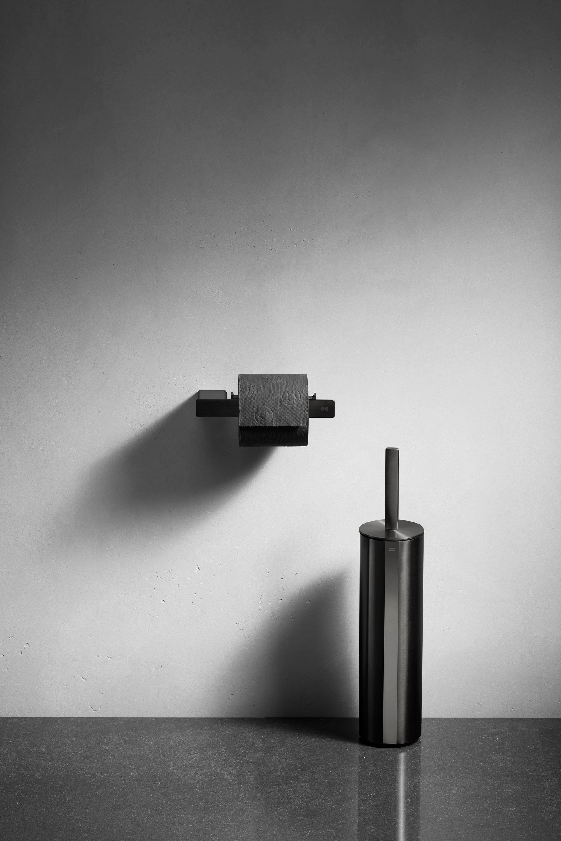 Elegant Toalettborste - Svart. Tillverkat i rostfritt stål som ytbehandlats enl. PVD-metoden ( Physical Vapour Deposition ) vilket ger en mycket tålig yta. För väggmontage.